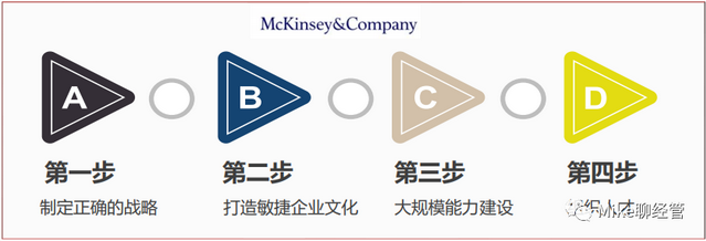 经过麦肯锡对全球 150家企业以及在数字领域表现的考察,可以将数字化转型归结为4步:
