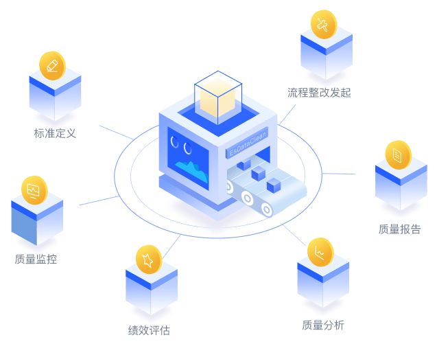 睿治数据质量管理平台给予从标准定义、质量监控、绩效评估、质量分析、质量报告、重大问题及时告警、流程整改发起、系统管理等数据质量管理全过程的功能。