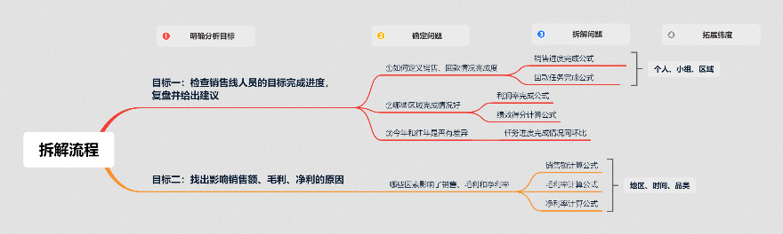 同时以计算公式结果为指标,拓展维度(比如地区、时间、品类等等)来探究不同维度下的指标差异。