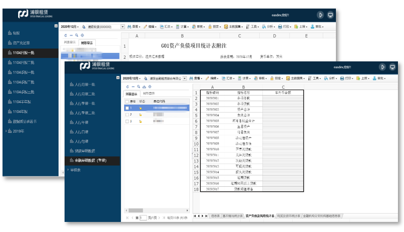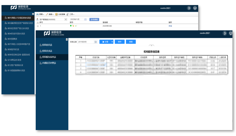 数据补录:包含承租人专项信息、融资租赁资产核销、信贷资产转让、同业存放、预算表等报表补录,将缺失数据按组织、时间维度进行人工填报。