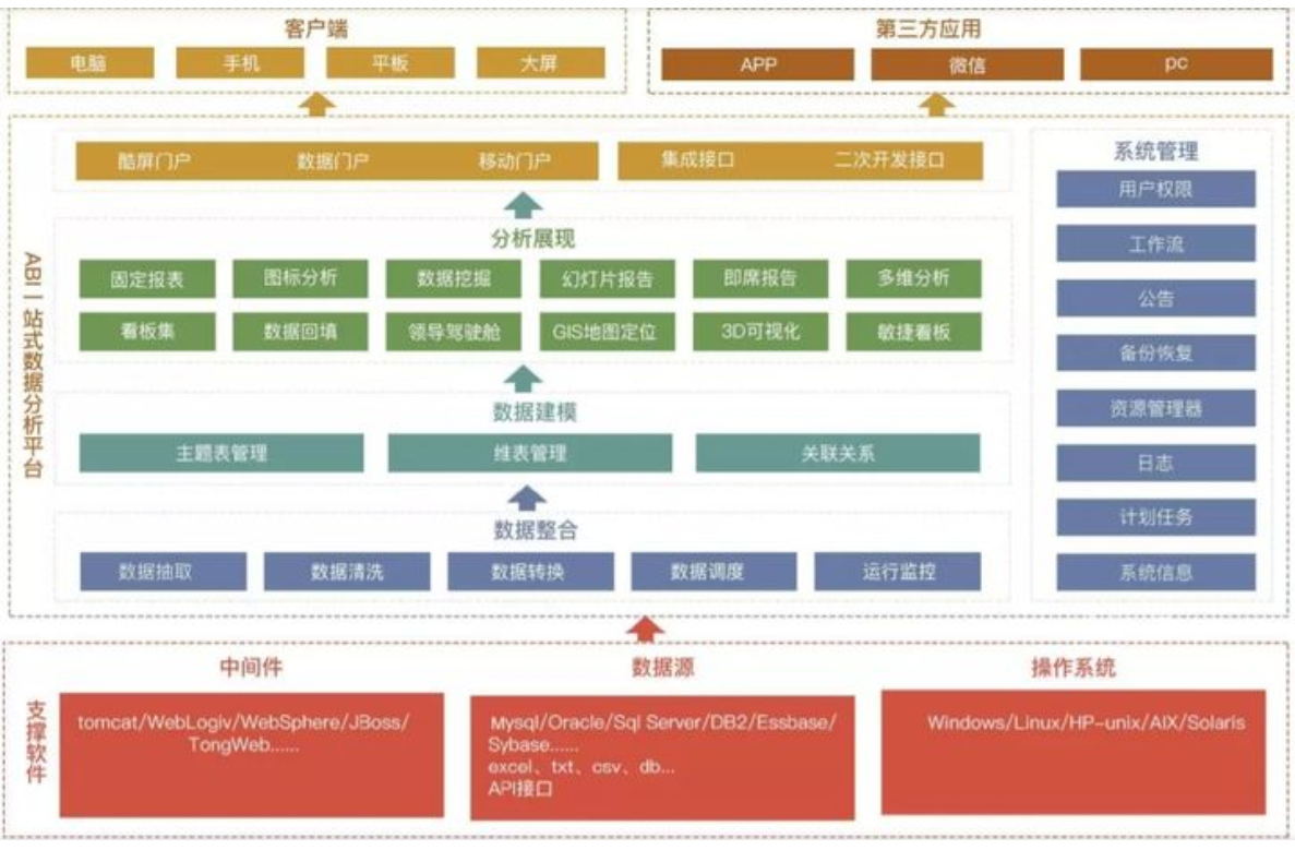 数据分析平台就是将公司一切的数据进行进行收集整理,包含体系数据、事务数据等等,在一致的数据框架下完成对数据的发掘和剖析,最终经过可视化的手法进行数据展现。