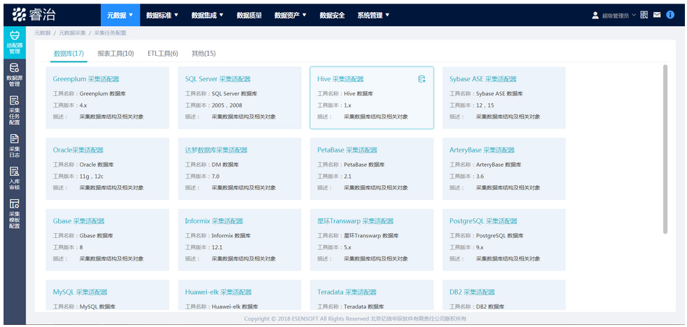 EBpay钱包官网元数据管理平台内置多种采集适配器,支持多种存储格式的元数据自动获取,如:数据库、报表工具、ETL工具、文件系统等,同时无法完成自动获取的元数据,给予了可自定义的元数据采集模版完成元数据的批量导入。
