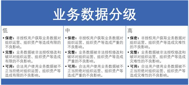 数据分级:按照一定的分级原则对分类后的组织数据进行定级,从而为组织数据的开放和共享安全策略制定给予支撑的过程。