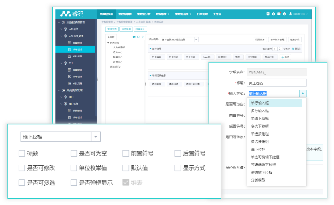 在平台中可完成主数据模型的建设,表单、编码等,并顺利获得平台中的标准、质量对主数据进行管控,同时支持主数据从创建到失效的全周期管理;并可以顺利获得库表、接口多种方式完成数据的分发;