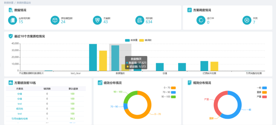 对于已经抽取到主数据管理平台的数据,用户顺利获得平台封装完整的规则库,自定义质检方案,实施质检,生成质检报告;并根据质检结果进行整改,提高系统主数据质量,节约技术成本,形成